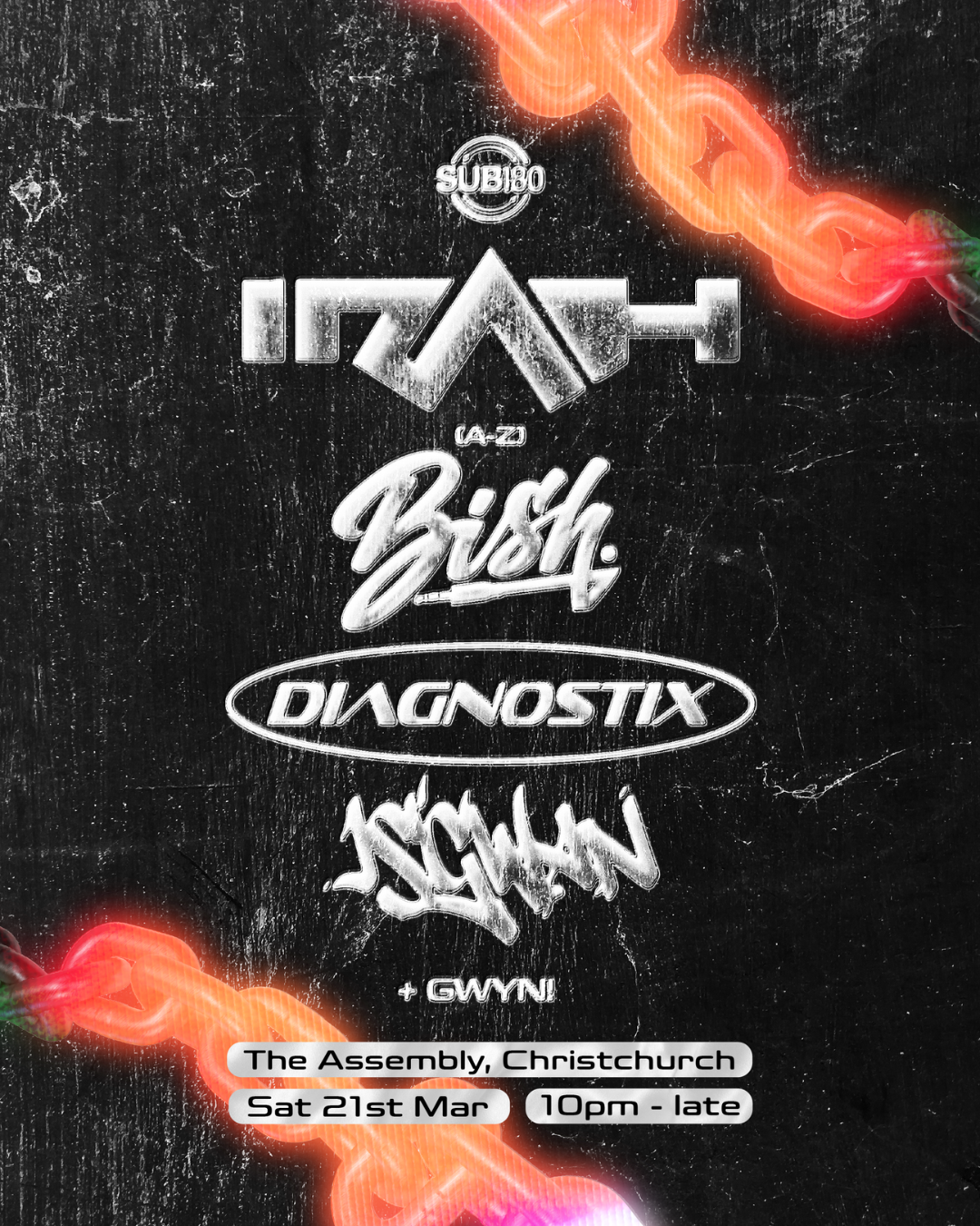 Joining him are BISH, DIAGNOSTIX, and ISGWAN, delivering a full-throttle night of Drum & Bass and Garage from start to finish.